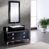 Materials: Steel Frame, Tempered Glass Countertop, Ceramic Sink, Ebony Macassar Veneer Drawers