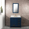 Madison 36-Inch Single Sink Carrara White Marble Vanity In Monarch Blue With F2-0012-06-TL Lavatory Faucet