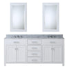 Water Creation’s collection of premier double sink bathroom vanities will add a level of sophistication and class to any bathroom’s décor. The crossroads of timeless design and innovative modern manufacturing processes merge harmoniously to ensure each vanity’s finishes and function are as reliable as their unmistakable beauty. Constructed of 100% hardwood and not particle board, Water Creation prides itself on creating high-class vanities that are designed to last a lifetime. The marble countertop, ceramic sinks, and elegantly crafted doors and drawers all lend credence to the durability and superior craftsmanship that Water Creation is known for. With the understanding that no one space is alike, all of Water Creation’s vanity designs come in multiple lengths to accommodate any room size.