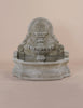 We suggest that birdbath/fountain tops not be left outside in the winter. Once the top fills with water/snow and freezes, the top may crack. All birdbath/fountain bases, bench legs and statuary should be raised up off the ground in winter so they will not freeze to the ground surface. Ideally, a fountain should be stored indoors in the winter away from the elements. However, if a fountain bowl must be left outside, remove all pumps, rubber stoppers, drain pipes, finials and small components, and cover the top with burlap or any absorbent material (old blanket/towel) and then wrapped with dark plastic, making sure that water does not accumulate in the basin and freeze. Fountain pumps, finials, and other small components should be stored indoors. Check the fountain periodically to insure that the cover is secure and water is not accumulating in any fountain component.