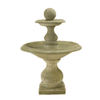 A uniquely shaped fountain, the ball finial sets atop a simple vase with pipes for water flow. A lower bulbous pedestal finishes off the design.