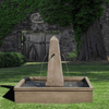 A decorated column placed in a wide pond makes up the Green Man Pond Fountain. Water flows down over the column, creating a unique and entertaining visual display.