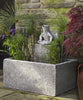 We suggest that birdbath/fountain tops not be left outside in the winter. Once the top fills with water/snow and freezes, the top may crack. All birdbath/fountain bases, bench legs and statuary should be raised up off the ground in winter so they will not freeze to the ground surface. Ideally, a fountain should be stored indoors in the winter away from the elements. However, if a fountain bowl must be left outside, remove all pumps, rubber stoppers, drain pipes, finials and small components, and cover the top with burlap or any absorbent material (old blanket/towel) and then wrapped with dark plastic, making sure that water does not accumulate in the basin and freeze. Fountain pumps, finials, and other small components should be stored indoors. Check the fountain periodically to insure that the cover is secure and water is not accumulating in any fountain component.