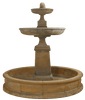 A wide design, the ball finial spurts water into the waiting bowl with pipes for water flow. The lower bowl also has the pipes. The one-piece ground pool has curbing motif to complete the design.