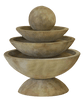 Water spurts from the top ball then trickles over the ball into the spherical bowl in this Tondo garden fountain. The water then flows over the bowl into the bottom matching bowl. An inverted bowl holds up this find water feature. This will make a wonderful addition to any garden or patio or entryway to greet your guests with style.