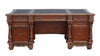 The Large Mahogany Writing Desk Is 63 " Wide X 37" Deep X 31.5" Tall. A Classic And Shapely Fully Constructed Beautiful Desk. The Desk Is 100 % Hand Made And Hand Carved In Mahogany And Features Details Of Leaf And Rope Edge Carvings. The Back Of Desk Features 5 Drawers For Storage And The Top Is A Tooled Oscar Writing Surface. The Desk Comes Fully Assembled. The Desk Is Very Unique And Finished In A Beautiful Vintage Classic (Vc) A Rich Mahogany With A Grey Rub To Accent The Carvings And Details. The Desk Is A Hand Made Creation By Heritage, A Fine Hand Made Furniture Collection , Adhering To The Standards Of Age Old Traditional Crafting. Each Piece Is Hand Carved One Piece At A Time By Some Of The Worlds Best Carvers. The Special Mahogany Wood Used Comes From Replanted Forests, The Selected Wood Has Been Kiln Dried. The Item In Its Final Form Is Stress And Pressure Tested Prior To Finishing To Insure Long Lasting Stability In Most All Climates, A Heritage Brand Standard. The Final Steps Of Hand Making Furniture Is The Application Of The Hand Applied Finishes. The Specialty Finishes Used Combine Hand Applied Layering, Glazing, Padding ,Distressing And Crackling Techniques And Complete The Beauty And Value Of Owning Timeless Heritage Furniture, A Quality That Will Last For Generations Of Ownership. This Item Can Be Special Ordered In Any Of The Heritage Family Of Special Finishes Contact Your Account Representative For Assistance. Made By Hand And Imported From Indonesia.