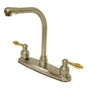 Kingston Brass Victorian High Arch with Lever Handles and Sprayer, Satin Nickel with Polished Brass