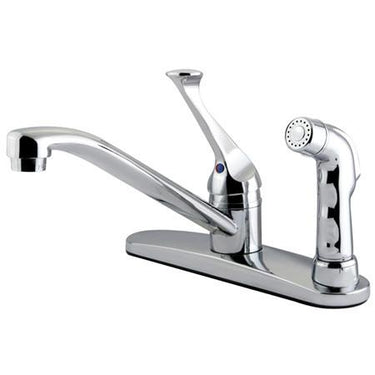 The Kingston Brass Water Saving Chatham Centerset Kitchen Faucet with Side Sprayer is a great value and features outstanding build quality and performance. Featuring an 8 inch spout reach with 5.75 spout height, this faucet provides plenty of space between the spout and sink basin. The lever handle is easy to operate and the faucet features use of a durable washerless cartridge. This kitchen faucet features a 1.5 gallon per minute water flow rate to meet the EPA's WaterSense standard. High Quality Brass Construction Includes Chrome Deck Sprayer 1.5 GPM Flow Rate for Water Savings Swivel Spout 8" Spout Reach Durable Washerless Cartridge