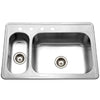Houzer Glowtone Topmount Stainless Steel 3-hole 50/50 Double 8-Inch Deep