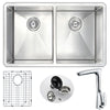ANZZI presents the 32 in. VANGUARD SERIES hand crafted under mount kitchen sink. Representing the latest in modern home fixture designs and traditional European crafting technique this stunning display of artistry is hand shaped to perfection using RHINO ALLOY certified 16-Gauge 304 stainless steel. Only ANZZI hand crafted kitchen sinks utilize RHINO ALLOY certified materials for superior strength and quality. The cavernous 50/50 deep soaking dual basin will comfortably accommodate the largest dish loads including pots, pans and more. And every ANZZI sink features extra-large Echo-STOP sound dampening pads and a layer of protective composite coating to further quiet noise and prevent condensation. We have paired this sink with the ANZZI Timbre Kitchen Sink Faucet. Each ANZZI faucet has been certified as Water Sense approved with solid brass construction and valve included. Well defined diversion lines ensure quick and total water drainage and the subtly curved corners allow of easier cleaning. ANZZI carries a proud tradition of crafting long lasting, quality home fixtures. With ANZZI perfection is our tradition.