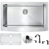 ANZZI presents the 32 in. ELYSIAN SERIES hand crafted farmhouse kitchen sink. Representing the latest in modern home fixture designs and traditional European crafting technique this stunning display of artistry is hand shaped to perfection using RHINO ALLOY certified 16-Gauge 304 stainless steel. Only ANZZI hand crafted farmhouse kitchen sinks utilize RHINO ALLOY certified materials for superior strength and quality. The cavernous deep soaking basin will comfortably accommodate the largest dish loads including pots, pans and more. And every ANZZI sink features extra-large Echo-STOP sound dampening pads and a layer of protective composite coating to further quiet noise and prevent condensation. We have paired this sink with the ANZZI Soave Kitchen Sink Faucet. Each ANZZI faucet has been certified as Water Sense approved with solid brass construction and valve included. Well defined diversion lines ensure quick and total water drainage and the subtly curved corners allow of easier cleaning. ANZZI carries a proud tradition of crafting long lasting, quality home fixtures. With ANZZI perfection is our tradition.