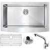 ELYSIAN Farmhouse Stainless Steel 32 in. 0-Hole Kitchen Sink and Faucet Set with Singer Faucet in Polished Chrome