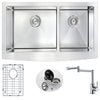 ELYSIAN Farmhouse Stainless Steel 36 in. Double Bowl Kitchen Sink and Faucet Set with Locke Faucet in Brushed Nickel