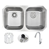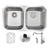 MOORE Undermount Stainless Steel 32 in. Double Bowl Kitchen Sink and Faucet Set with Harbour Faucet in Polished Chrome