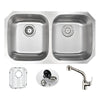 MOORE Undermount Stainless Steel 32 in. Double Bowl Kitchen Sink and Faucet Set with Sails Faucet in Polished Chrome