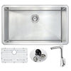 VANGUARD Undermount Stainless Steel 32 in. 0-Hole Single Bowl Kitchen Sink with Timbre Faucet in Polished Chrome