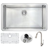 VANGUARD Undermount Stainless Steel 32 in. 0-Hole Single Bowl Kitchen Sink with Sails Faucet in Polished Chrome