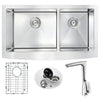 ELYSIAN Farmhouse Stainless Steel 33 in. Double Bowl Kitchen Sink and Faucet Set with Opus Faucet in Polished Chrome