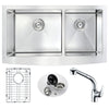 ELYSIAN Farmhouse Stainless Steel 33 in. Double Bowl Kitchen Sink and Faucet Set with Locke Faucet in Polished Chrome