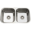 The Houzer STC-2200SR-1 Eston Series 18 Gauge Undermount 70/30 Double Bowl Kitchen Sink features spacious main bowl with convenient prep bowl on the right. Soft curves and abundant capacity characterize the model within the series. Additional features for this model include heavy 18 gauge T-304 stainless steel, flawless lustrous satin finish with high lighted rim, and StoneGuard undercoating over Super Silencer pad that helps reduce clattering sound of washing dishes. Large bowl measures 17.75-inches wide by 18.5-inches by 9-inches deep and prep bowl measures 11.4375-inches wide by 14.9375-inches by 7-inches deep and supplied with mounting clips, template and instructions. Meets ASME A112.19.3-2000, UPC and CSA standards and covered by limited lifetime warranty. Fits 36 inch cabinet.