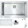 ELYSIAN Farmhouse Stainless Steel 32 in. Single Bowl Kitchen Sink and Faucet Set with Soave Faucet in Brushed Nickel