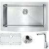 ANZZI presents the 32 in. ELYSIAN SERIES hand crafted farmhouse kitchen sink. Representing the latest in modern home fixture designs and traditional European crafting technique this stunning display of artistry is hand shaped to perfection using RHINO ALLOY certified 16-Gauge 304 stainless steel. Only ANZZI hand crafted farmhouse kitchen sinks utilize RHINO ALLOY certified materials for superior strength and quality. The cavernous deep soaking basin will comfortably accommodate the largest dish loads including pots, pans and more. And every ANZZI sink features extra-large Echo-STOP sound dampening pads and a layer of protective composite coating to further quiet noise and prevent condensation. We have paired this sink with the ANZZI Soave Kitchen Sink Faucet. Each ANZZI faucet has been certified as Water Sense approved with solid brass construction and valve included. Well defined diversion lines ensure quick and total water drainage and the subtly curved corners allow of easier cleaning. ANZZI carries a proud tradition of crafting long lasting, quality home fixtures. With ANZZI perfection is our tradition.