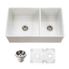 Houzer Platus 33 inch White Fireclay Apron Front Farmhouse Single Bowl Kitchen Sink with Basket Strainer and Basin Grid Included