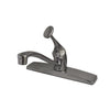 With traditional styling, the Water Saving  Americana Centerset Kitchen Faucet looks great in almost all decorative styles. With twin acrylic handles, water temperature and volume is easily controlled. The spout reaches over 7 inches to give the user enough clearance from the sink. Faucet installs easily and is constructed from solid brass for durability and reliability. Faucet flows at a maximum of 1.5 gallons per minute for water savings.