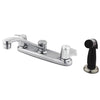 With traditional styling, the Americana Centerset Kitchen Faucet looks great in almost all decorative styles. With twin acrylic handles, water temperature and volume is easily controlled. The spout reaches over 7 inches to give the user enough clearance from the sink. Faucet installs easily and is constructed from solid brass for durability and reliability. Includes a side sprayer. Faucet flows at a maximum of 1.5 gallons per minute for water savings.