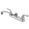 Upgrade your home kitchen faucet with the Kingston Brass Water Saving Magellan Centerset Kitchen Faucet. This kitchen faucet features solid brass construction for outstanding durability and reliability. The spout on the faucet reaches out over 7 inches with a spout height of 4.5 inches giving the user plenty of space between the spout and sink bottom. The faucet also features a low flow 1.5 gallons per minute to meet the EPA's WaterSense criteria. This kitchen faucet installs on a 8 inch centerset installation with standard US plumbing connections.