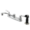 Upgrade your home kitchen faucet with the Kingston Brass Water Saving Magellan Centerset Kitchen Faucet with Side Sprayer. This kitchen faucet features solid brass construction for outstanding durability and reliability. The spout on the faucet reaches out over 7 inches with a spout height of 4.5 inches giving the user plenty of space between the spout and sink bottom. The faucet also features a low flow 1.5 gallons per minute to meet the EPA's WaterSense criteria. This kitchen faucet installs on a 8 inch centerset installation with standard US plumbing connections.
