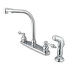 Simplicity and function - The Kingston Brass Victorian Centerset Kitchen Faucet with Side Sprayer is the perfect faucet for simplicity and functionality. With a simple yet tactful design, this kitchen faucet will look great in a variety of decorative scenarios. The cross handles also ADA - compliant and turn easily with little effort. The faucet features solid brass construction for long-lasting durability and reliability and utilizes washerless cartridges for drip-free performance. The spout reaches over 6 inches and stands over 10 inches tall to provide the user enough space between the sink. Faucet installs on standard US plumbing connections and meets the EPA's WaterSense program with a 1.5 gallon per minute flow, saving both water and money.