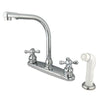 Kingston Brass GKB711LL Water Saving Legacy Centerset High Arch Spout Kitchen Faucet with White Sprayer, Chrome