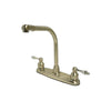 Simplicity and function - The Kingston Brass Water Saving Victorian Centerset Kitchen Faucet is the perfect faucet for simplicity and functionality. With a simple yet tactful design, this kitchen faucet will look great in a variety of decorative scenarios. The lever handles are also ADA - compliant and turn easily with little effort. The faucet features solid brass construction for long-lasting durability and reliability and utilizes washerless cartridges for drip-free performance. The spout reaches over 6 inches and stands over 10 inches tall to provide the user enough space between the sink. Faucet installs on standard US plumbing connections and meets the EPA's WaterSense program with a 1.5 gallon per minute flow, saving both water and money.