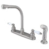 Kingston Brass Victorian High Arch with Cross Handles and Sprayer, Satin Nickel