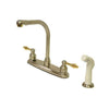Simplicity and function - The Kingston Brass Water Saving Victorian Centerset Kitchen Faucet with Side Sprayer is the perfect faucet for simplicity and functionality. With a simple yet tactful design, this kitchen faucet will look great in a variety of decorative scenarios. The lever handles are also ADA - compliant and turn easily with little effort. The faucet features solid brass construction for long-lasting durability and reliability and utilizes washerless cartridges for drip-free performance. The spout reaches over 6 inches and stands over 10 inches tall to provide the user enough space between the sink. Faucet installs on standard US plumbing connections and meets the EPA's WaterSense program with a 1.5 gallon per minute flow, saving both water and money.