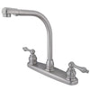 Kingston Brass Victorian High Arch Kitchen Faucet with Lever Handles, Satin Nickel with Polished Brass