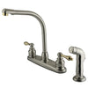 Kingston Brass Victorian High Arch Kitchen Faucet with Cross Handles and Sprayer, Satin Nickel with Polished Brass