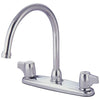 Simplicity and function - The Kingston Brass Vista Centerset Kitchen Faucet with Side Sprayer is the perfect faucet for simplicity and functionality. With a simple yet tactful design, this kitchen faucet will look great in a variety of decorative scenarios. The blade handles also ADA - compliant and turn easily with little effort. The faucet features solid brass construction for long-lasting durability and reliability and utilizes washerless cartridges for drip-free performance. The spout reaches over 6 inches and stands over 10 inches tall to provide the user enough space between the sink. Faucet installs on standard US plumbing connections and meets the EPA's WaterSense program with a 1.5 gallon per minute flow, saving both water and money.