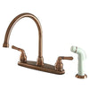 Kingston Brass Magellan Centerset Kitchen Faucet with White Sprayer, Satin Nickel