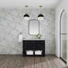 The 48" Lorelai Single Vanity celebrates timeless form and exquisite finish details, combined with practical function. The rich Black Onyx finish is accented by coin-edge knobs in Champagne Brass which provides an sophisticated contrast. Reeded details, and clean, and raised picture frame molding lend visual interest. This single-door cabinet opens to a spacious interior with a single shelf and a convenient USB/Electric power outlet. Six drawers plus one tip-out drawer offer additional storage space. With the addition of a classic White Zeus Quartz top with backsplash and undermount sink, this vanity is a seamless integration of modern design and functionality.