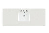 • Vanity set includes a 3cm eased edge White Zeus Silestone quartz top with matching quartz backsplash, two white porcelain rectangular sinks and mounting brackets for easy installation. Top is pre-drilled for two single hole faucets. Faucets not included.