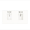 The 84" Brittany Double Vanity in Bright White by James Martin Vanities features optimal organization with two soft-close tip-out drawers with removable bamboo inserts and 11 full-extension drawers, all of which are lined with an aluminum laminate surface for easy cleaning and feature soft-close undermount glides. This cabinet has two doors, each concealing an interior shelf with integrated electric/USB ports. This vanity set includes a 3cm eased edge White Zeus Silestone quartz top that is predrilled for two 8" widespread faucets and two rectangular undermount sinks. Faucets are not included.