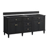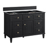 The 60" Lorelai Double Vanity celebrates timeless form and exquisite finish details, combined with practical function. The rich Black Onyx finish is accented by coin-edge knobs in Champagne Brass which provides an sophisticated contrast. Reeded details, and clean, and raised picture frame molding lend visual interest. This two-door cabinet opens to a spacious interior with shelves and convenient USB/Electric power outlets. Three traditional drawers and two tip-outs offer additional storage space. Choose one of our tops with undermount, rectangular sinks to perfectly complete this masterpiece.