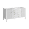 The 48" Myrrin Single Vanity features a minimalistic silhouette with fluted details, resulting in a blend of classical elegance and contemporary design. The deeply fluted panels run perpendicular on the doors and drawers, adding sophistication and visual interest to the design. Toggle-style knobs in Champagne Brass provide a luxe accent to the rich Bright White finish. The single-door cabinet opens to a spacious interior with a single shelf and a convenient USB/Electric power outlet. Six drawers lend additional storage. Choose one of our tops with undermount, rectangular sinks to perfectly complete this masterpiece.