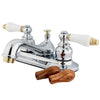 The Kingston Brass Restoration Centerset Lavatory Faucet provides an elegant touch to any home bathroom. With a traditional design, this faucet is suitable for almost all classic and transitional décor scenarios. The handles turn easily and the faucet is installed with durable washerless cartridges for drip-free performance. The faucet is constructed from solid brass to ensure its quality and reliability. A retail pop-up drain is included and the faucet installs on standard US plumbing connections.