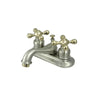 Kingston Brass GKB609B Water Saving Restoration Centerset Lavatory Faucet with Ceramic & Oak Handles, Satin Nickel with Polished Brass Trim