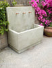 Bring the soothing sound of nature into your outdoor space with the Catalina Outdoor Cast Stone Garden Fountain. This striking 4-spout fountain, reminiscent of classic European courtyard fountains, features water pouring gracefully from each rustic spout mounted on a sturdy, framed four-sided column topped with a charming ball finial. Water cascades into piped cloverleaf bowls below, creating a lively splash that drowns out background noise and adds a tranquil ambiance to any garden, courtyard, or entryway. Crafted from durable fiber-reinforced cast stone concrete and finished with a hand-applied premium coating, this self-contained fountain is built to last and requires no direct plumbing connection. Proudly made in the USA, the Catalina Fountain offers adjustable water flow and effortless maintenance, making it a captivating and practical addition to your outdoor living space.