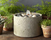 We suggest that birdbath/fountain tops not be left outside in the winter. Once the top fills with water/snow and freezes, the top may crack. All birdbath/fountain bases, bench legs and statuary should be raised up off the ground in winter so they will not freeze to the ground surface. Ideally, a fountain should be stored indoors in the winter away from the elements. However, if a fountain bowl must be left outside, remove all pumps, rubber stoppers, drain pipes, finials and small components, and cover the top with burlap or any absorbent material (old blanket/towel) and then wrapped with dark plastic, making sure that water does not accumulate in the basin and freeze. Fountain pumps, finials, and other small components should be stored indoors. Check the fountain periodically to insure that the cover is secure and water is not accumulating in any fountain component.