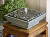 We suggest that birdbath/fountain tops not be left outside in the winter. Once the top fills with water/snow and freezes, the top may crack. All birdbath/fountain bases, bench legs and statuary should be raised up off the ground in winter so they will not freeze to the ground surface. Ideally, a fountain should be stored indoors in the winter away from the elements. However, if a fountain bowl must be left outside, remove all pumps, rubber stoppers, drain pipes, finials and small components, and cover the top with burlap or any absorbent material (old blanket/towel) and then wrapped with dark plastic, making sure that water does not accumulate in the basin and freeze. Fountain pumps, finials, and other small components should be stored indoors. Check the fountain periodically to insure that the cover is secure and water is not accumulating in any fountain component.